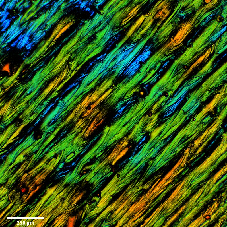 Surface of 3D printed steel imaged with reflection microscopy at 488 nm. Color coding indicates depth. Image courtesy of John Corsi and Kevin Yong.